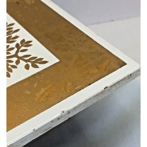 Vintage Berggren Tile Trivet First Day Of Christmas Partridge Pear MCM Gold Turquoise. 6" x 6". Good used condition with some wear. Some fading on gold on right side. Some small flea bites or chips on the edges as shown.