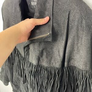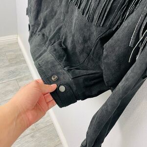 Vintage Bermans Black Fringe Leather Bomber Jacket