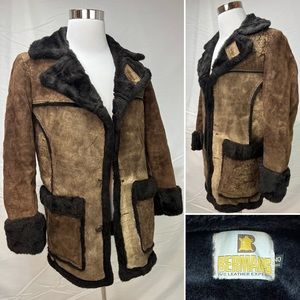 Vintage Bermans Brown Suede Sherpa Rancher Marlboro Man Winter Coat Jacket 40R