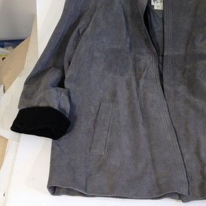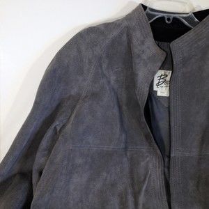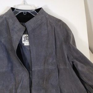 Vintage Bermans Womens Leather Suede Jacket Size 16 Gray w/Black Trim