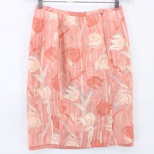 Vintage Bernard Holtzman Straight Skirt Womens Pink Floral Casual Retro Size 28