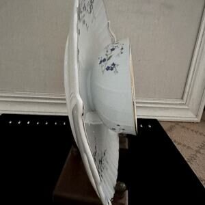 Vintage Bernardaud Limoges Myosotis dip and platter tray. Tiny blue floral pattern and scalloped 22K gold trim 12" diameter. Numbered #43