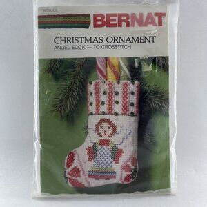 Vintage Bernat Christmas Cross Ornament Angel Stocking 3"x4"