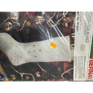 Vintage Bernat Snowflakes & Lace Counted Stitchery Christmas Stocking Kit Sealed