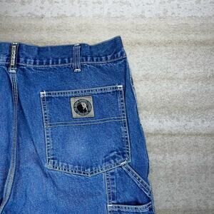 Vintage Berne Carpenter Jeans Medium Wash Work Wear Denim Baggy Fit Bear Logo Patch 90s