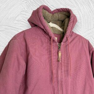Vintage Berne pink canvas sherpa lined hooded workwear jacket women’s L