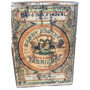 Vintage Berry Brothers Varnishes Celebrated Coach & Railway Tin Detroit Label