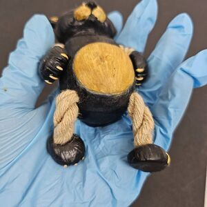 Vintage Bert Anderson Collection Christmas Bear Ornament 2002 Dangling Folk Art with Moveable Natural Jute Rope Arms & Legs