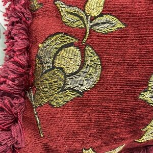 Vintage Bess Chenille Pillow Decorative Fringe Embroidered Red/Gold
