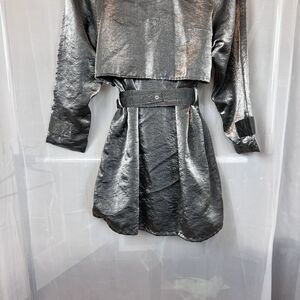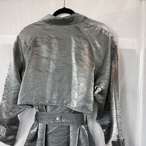 Vintage Best United Garment metallic silver mid length trench coat Small rave