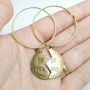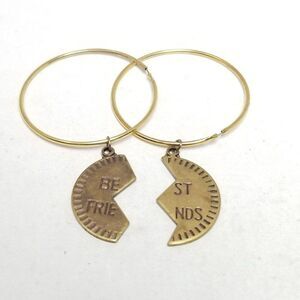 Vintage Best Friend Charm Hoop Earrings, Gold Tone, Dangle Pendants, Estate