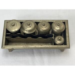 Vintage Betel Nut Box Kit Set 5 Lidded Canisters Divided Tray Indonesia Brass