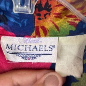 Vintage Beth Michaels Satin Floral Red Blue Green Bold Kimono Robe Size M/L