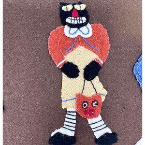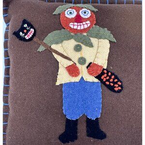 Vintage Bethany Lowe Halloween Pillow Decorative Throw Felt Jack O Lantern Cat