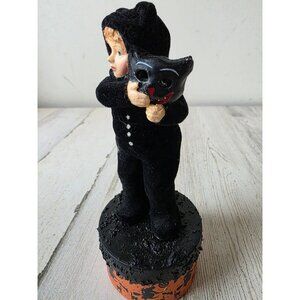 Vintage Bethany Lowe cat costume mask Halloween box trinket candy figurine girl decor statue Black Velvet