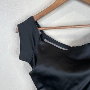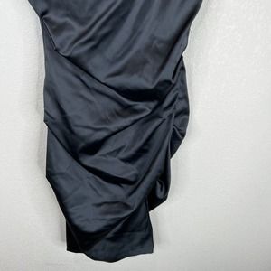Vintage Betsey & Adam Cocktail Dress Size 10 Black Off Shoulder Ruched Satin USA