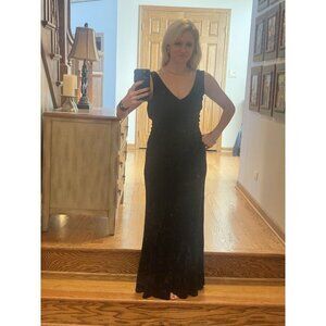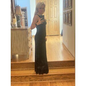 Vintage Betsey Johnson Black Crushed Velvet Maxi low back Dress M/L Whimsigoth