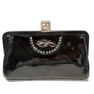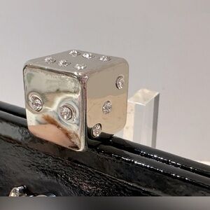 Vintage Betsey Johnson Black Patent Leather Crystal DICE Clasp Clutch Purse 👛