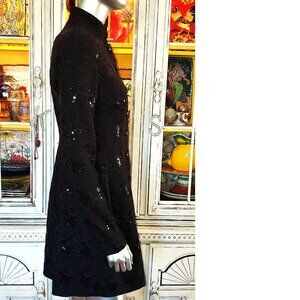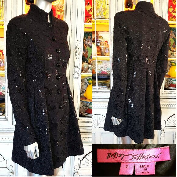 Vintage Betsey Johnson Black Peacoat Embroidered Sequin Dress Coat Jacket S 2