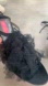 These are these fun, sexy vintage Betsey Johnson black high heels. Lace pom poms are in excellent condition, believe I only wore them once. The back straps are in bad condition just due to age and unraveling. Could be cleaned up or replaced with a fabric lace.