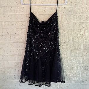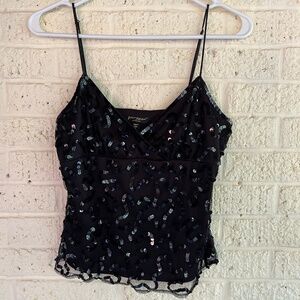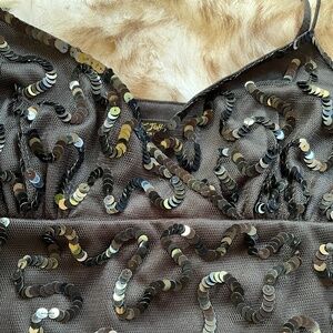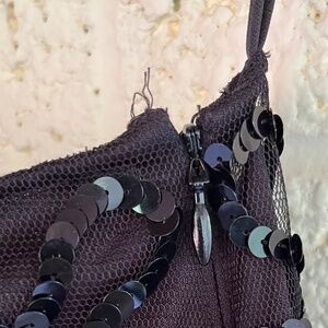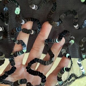 Vintage Betsey Johnson Black Sequin Mesh Flutter Two Piece