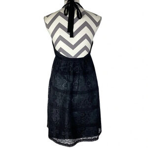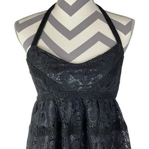 Vintage Betsey Johnson Lace Dress Womens 2 XS Black Halter Babydoll Open Back