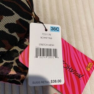 Betsey Johnson Animal Print and Pink 36C bra with little heart gold like charm in center