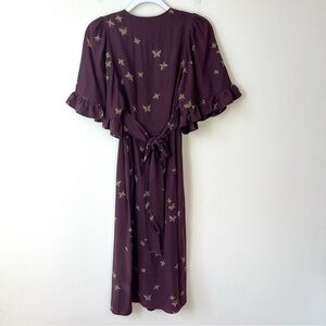 Vintage Betsey Johnson Plum Butterfly Print Ruffle Silk Midi Dress