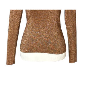 Vintage Betsey Johnson Top Size Medium Long Sleeve Sparkle Bronze Retro Y2k