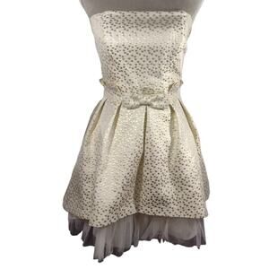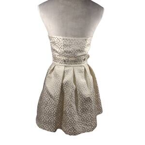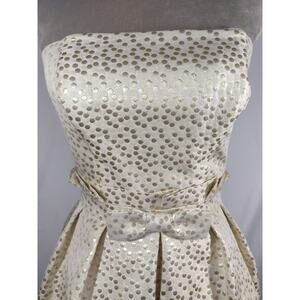 Vintage Betsey Johnson White Gold Polka Dot Strapless Cocktail Party Dress Size4
