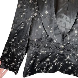Vintage Betsey Johnson Y2K 100% Silk Embroidered Beaded Cropped Blazer Size 8