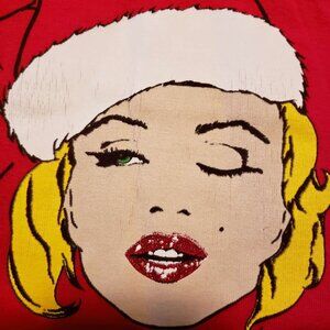Vintage Betsey Johnson Y2K Red Marilyn Monroe Wink Face Wearing Santa Hat Tank Top Shirt