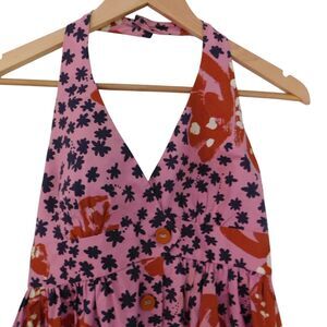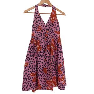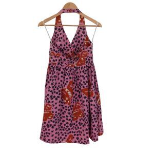 Vintage Betsey Johnson dress size 2 Halter Top Cotton Butterfly Floral Pink