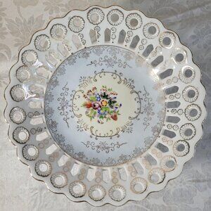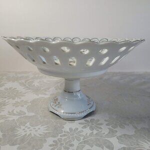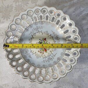 Vintage Betson Pedestal 8" dia Compote 4-3/4" Articulated Flowers Hand Painted