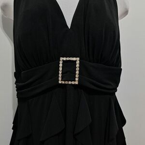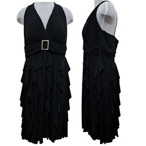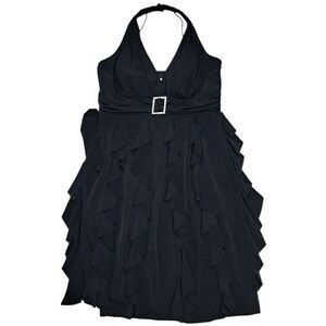 Vintage Betsy & Adam 90's Y2K Halter Neck Ruffle Goth Knee Length Dress S 14W