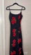 This stunning black maxi dress features vibrant red floral patterns, with rhinestones throughout. perfect for any special occasion. Its elegant design and comfortable fit make it a must-have addition to your wardrobe.