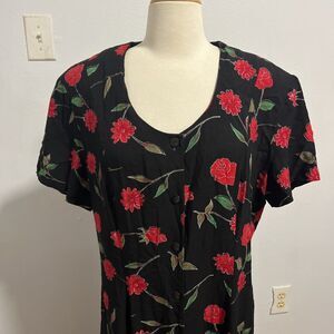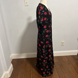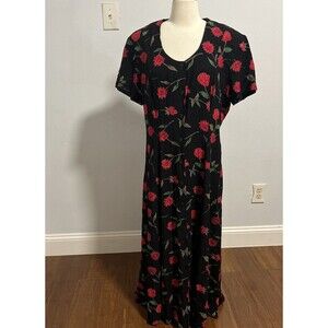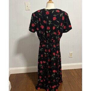 This vintage Betsy Lauren maxi dress is the perfect addition to any wardrobe. With a crew neckline and button closure, it's suitable for a variety of occasions including travel, parties, casual wear, workwear, and business settings. The dress is made from rayon fabric and features a beautiful floral pattern, making it perfect for summer, fall, and spring seasons. The dress has a fit and flare style with a long length and collarless design. It's available in size L and is machine washable for easy care. The dress is perfect for those who love the 90s fashion and want to add a touch of vintage to their wardrobe.