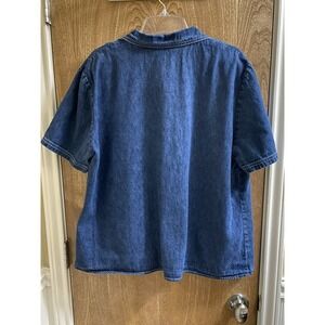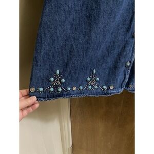 Vintage Betsy Lauren Woman Denim Button Blouse Turquoise Metal Beads 18W Western
