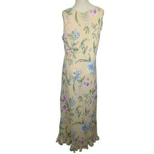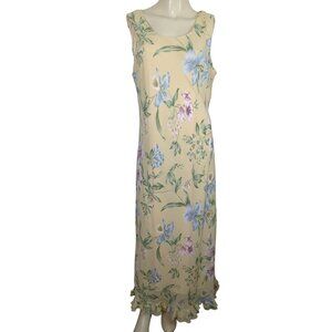 Vintage Betsy's Things Sleeveless Maxi summer yellow blue Dress Ruffled Hem 16