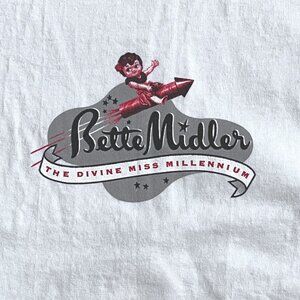 A vintage Bette Midler tee from her 1999/2000 "The Divine Miss Millennium Tour". Bette is an American actress, comedian, singer, and author. Throughout her five-decade career Midler has received numerous accolades, including four Golden Globe Awards, three Grammy Awards, three Primetime Emmy Awards, two Tony Awards, and a Kennedy Center Honor, in addition to nominations for two Academy Awards and a British Academy Film Award.