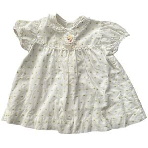 Nathan Krauskopf Co. ALL COTTON MADE IN SWITZERLAND white with yellow and green embroidered flowers, round Peter Pan collar with lace and embroidered duck