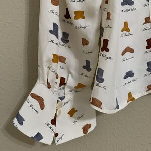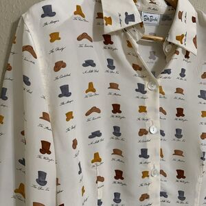 Vintage Betty Barclay Equestrian Western Hats Blouse Beige Coral Sz 46 M/L