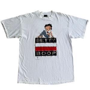 Vintage Betty Boop 1998 4th of July USA Sparkly White Womens Shirt Size XL