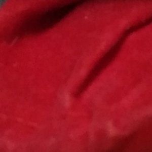 sum wear on dress pleats and edges, tiny stain in fabric on dress