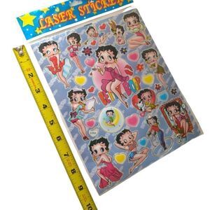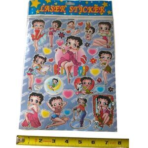 Vintage Betty Boop Laser Stickers New Old Stock About 25-30 Sealed 80s To 90s. Condition is new and sealed package. Has about 25-30 stickers if you count the little hearts and little stickers. Please see photos for detailed condition. Will be sent loosely rolled.