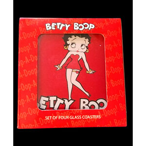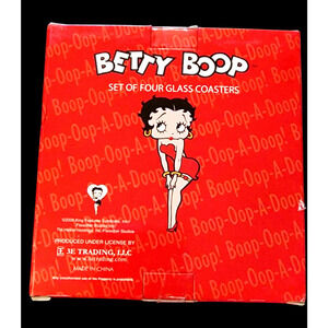 Vintage 2008 Betty Boop glass coasters set of four original box. King Features.