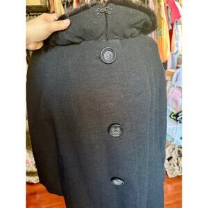 Vintage Betty Rose Black Wool Coat Fur Collar Mob Wife Jacket Small Union Made