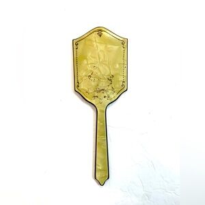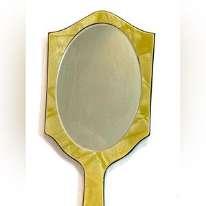 Vintage Beveled Vanity Hand Mirror Yellow Celluloid Art Deco Victorian