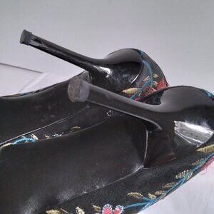 Vintage Beverly Feldman Black Floral Embroidered Pumps with Shiny Heels sz10M