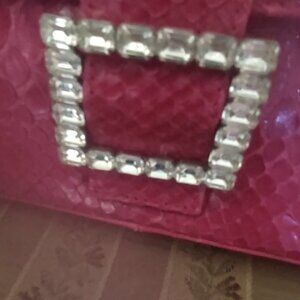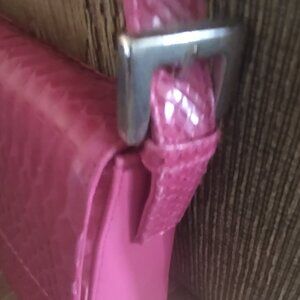Vintage Beverly Feldman Pink Snakeskin Crystal Buckle Shoulder Bag